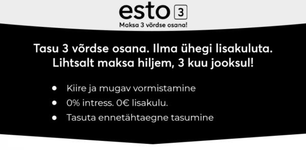 ESTO 3-osaline makseviis – ajata enda ostukorvi maksumus kolmeks võrdseks makseks ilma ühegi lisatasuta!